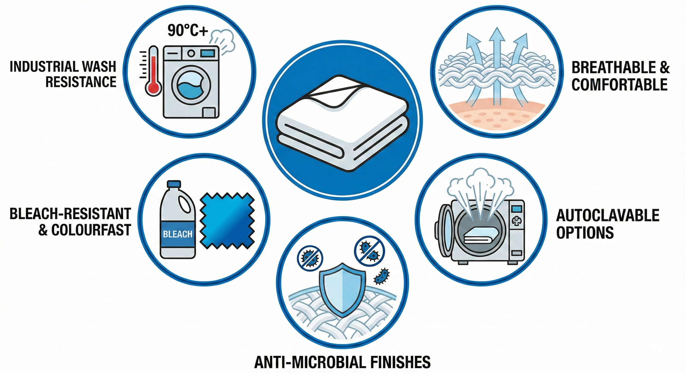 Designed to endure 90°C+ wash cycles and disinfectant treatments without damage.