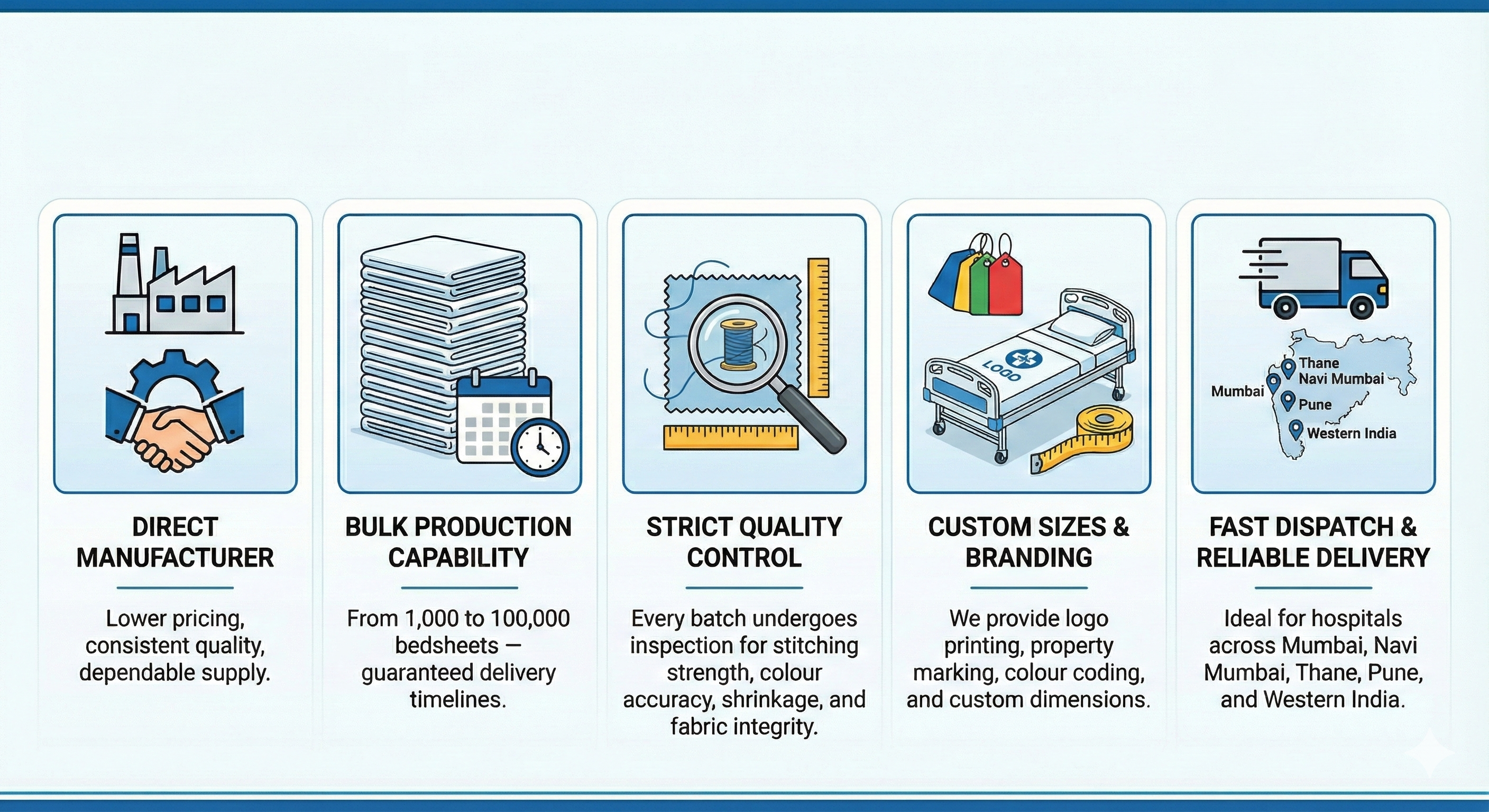 From 1,000 to 100,000 bedsheets — guaranteed delivery timelines.